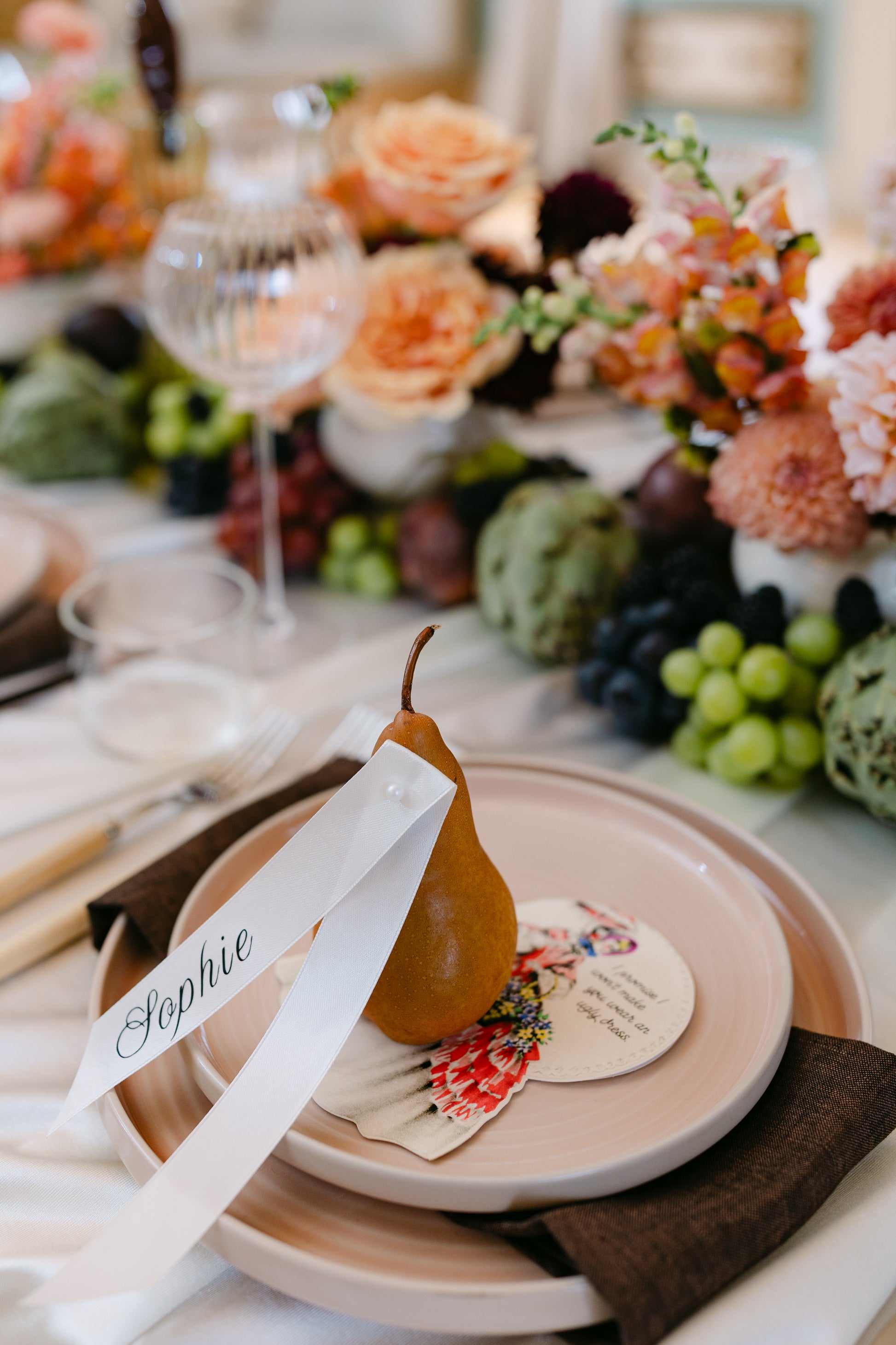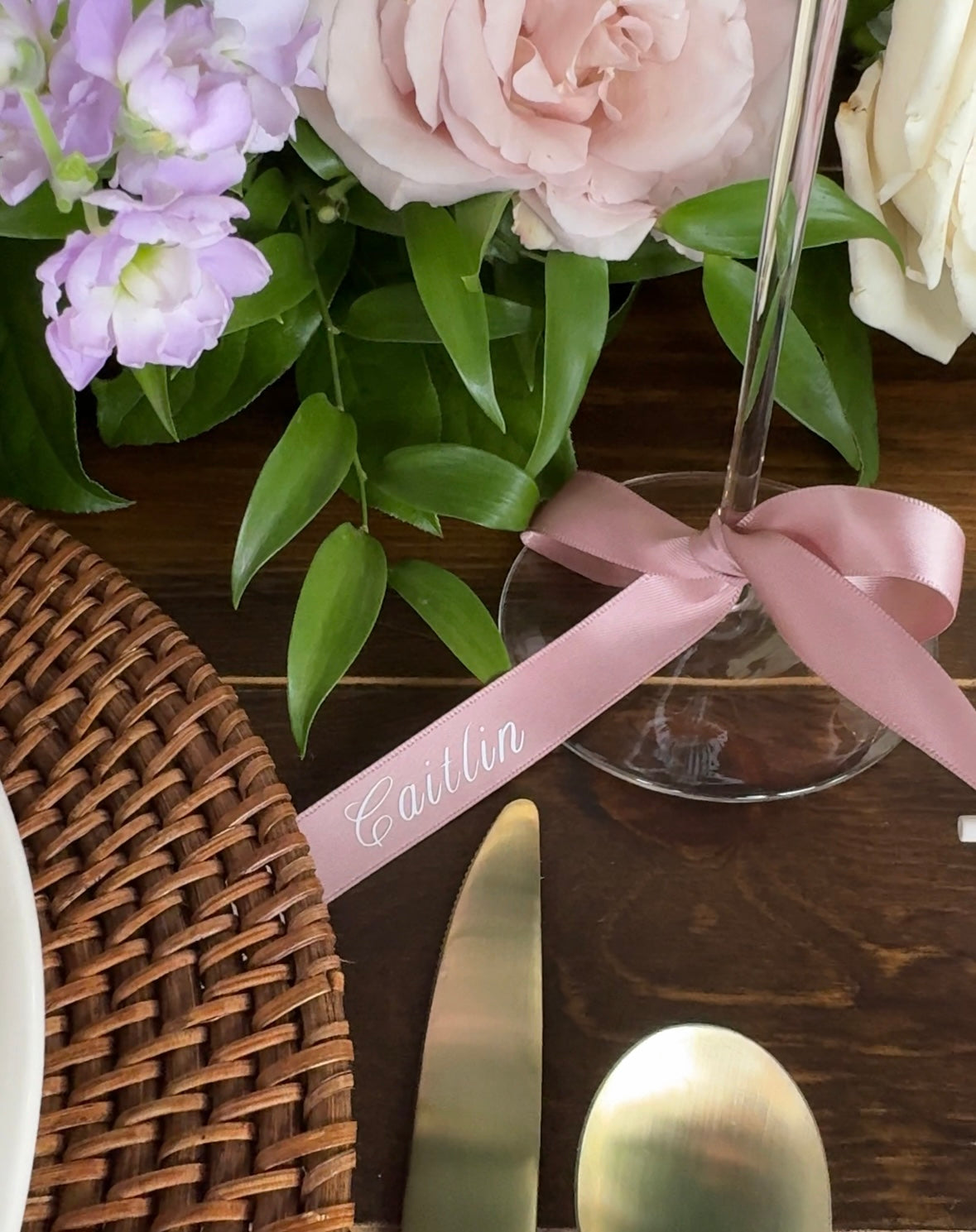 Our custom name tags are the perfect finishing detail for any tablescape — thoughtfully designed to complement your theme, color palette, and table décor.